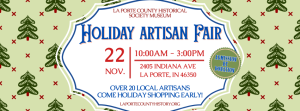 Welcome to the site of the La Porte County Historical Society Museum! We hope you enjoy your tour and will consider attending in person when you can! La Porte County is rich in history and the wonderful museum reflects that. The La Porte County Historical Society Museum hosts many events and exhibits each year; from re-enacting the Civil War to filling an acre of land with old cars, permanent exhibits to special current exhibits, there is something for everyone!